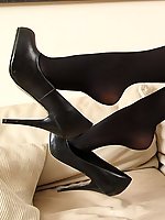 Pretty british babe in black pantyhose and heels (Daisy Watts) |