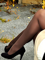 added: 2014-03-23 Mature posing outdoor in opaque pantyhose and heels |
