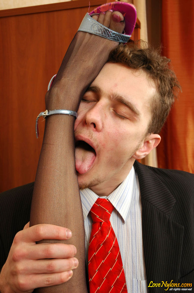 Admiring the feel of sheer nylon against skin, tongue and dick..